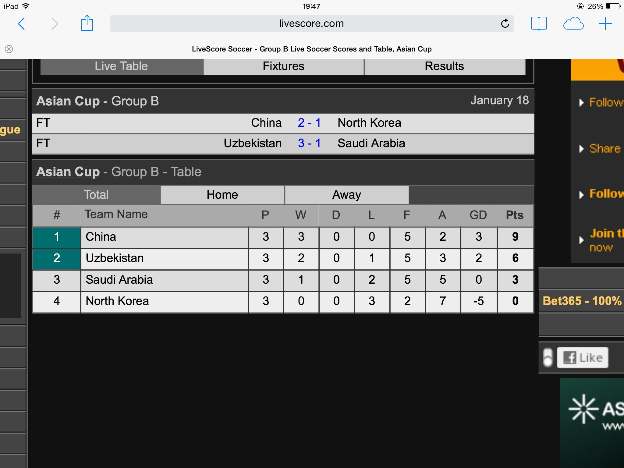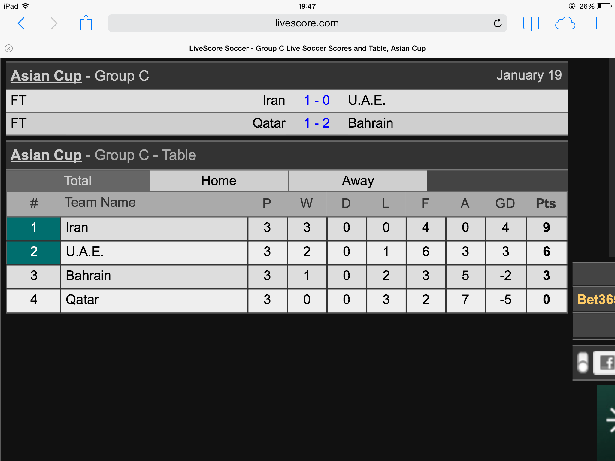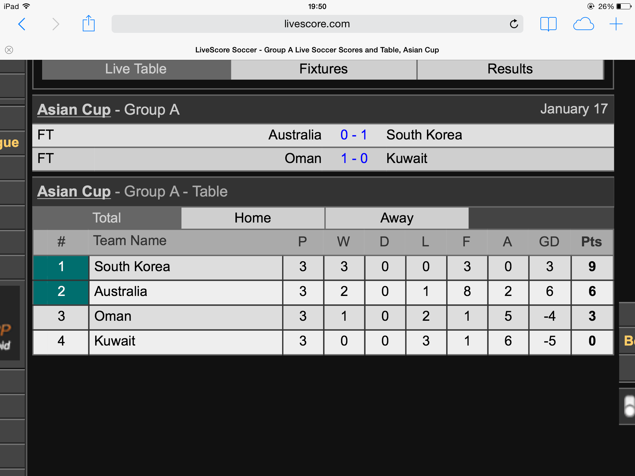 asian cup ตารางรอบแรกสวยงามมาก