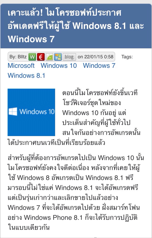 ผู้ใช้ Windows 7 และ Windows 8.1 ทาง Microsoft จะให้ Upgrade ไปใช้ Windows 10 ได้ฟรี