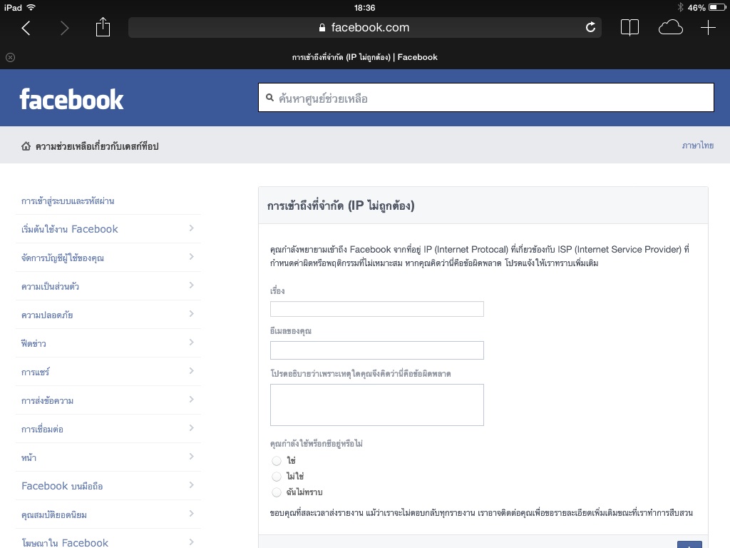 มีวิธีติดต่อ Facebook ไหมครับ อยู่ดี ๆ โดนบล็อก ยื่นคำร้องไป 10 กว่าวัน วันนี้มีเมลส่งมาให้ยื่นคำร้องอีก