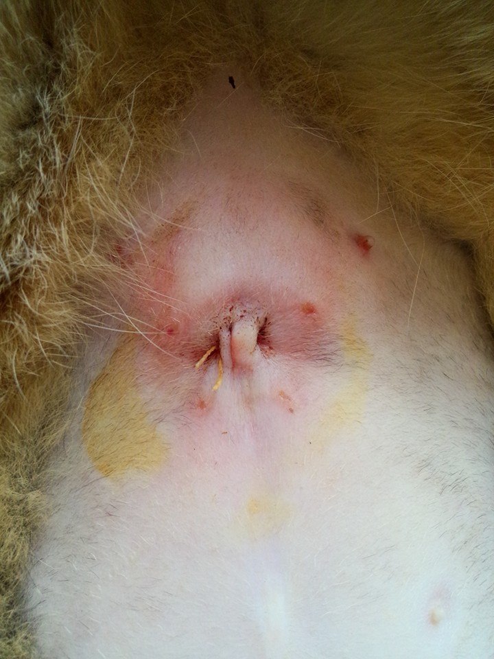 ช่วยดูแผลทำหมันให้น้องแมวหน่อยค่ะ พอดีพาไปทำหมันวันที่ 16/01/58 วันนั้นเค้าเข้ามาทำหมันให้ แมวกับหมาฟรีค่ะเลยพาน้องไปทำ