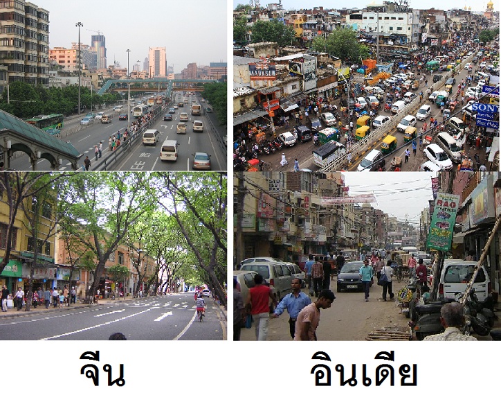 ดูภาพนี้ก็พอเปรียบได้แล้วครับ ว่าที่ไหนเละเทะกว่ากัน สภาพบ้านเมืองจากในรูปถ่ายถ้าให้เทียบกับจีนก็พูดได้เต็มปากครับว่านรกกับสวรรค์ จีนคือบ้านเมืองเค้าดูดีมากๆ เขาไปไกลแล้วจริงๆ เหลือแต่เรื่องคนที่คงต้องพัฒนากันไป แต่เชื่อว่าในอนาคตคนจีนน่าจะดีขึ้นแน่นอน เพราะเห็นความพยายามของรัฐบาลในการดัดนิสัยประชาชนเต็มที่ (ตามสถานีรถไฟมักจะมีป้ายสอนเรื่องมารยาทอยู่) และเด็กรุ่นใหม่ๆ นี่มารยาทดีในแบบฉบับสากลแล้วครับ อีกหน่อยผมเชื่อว่าจีนไปไกลแน่ ในขณะที่อินเดียนี่ยังไม่เห็นภาพของการพัฒนาเลยเพราะเหมือนเขายังมีกำแพงวัฒนธรรมมาครอบงำอยู่