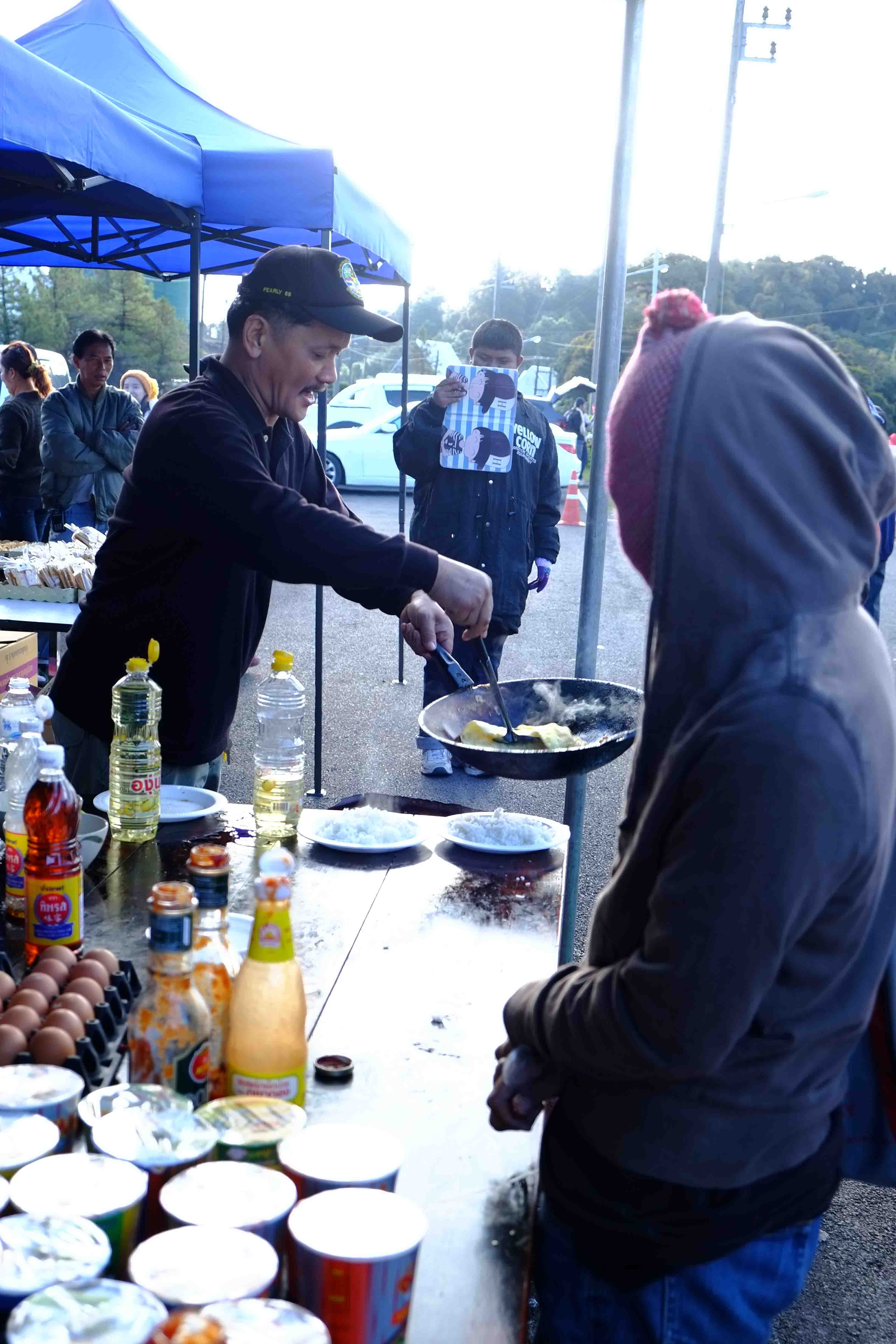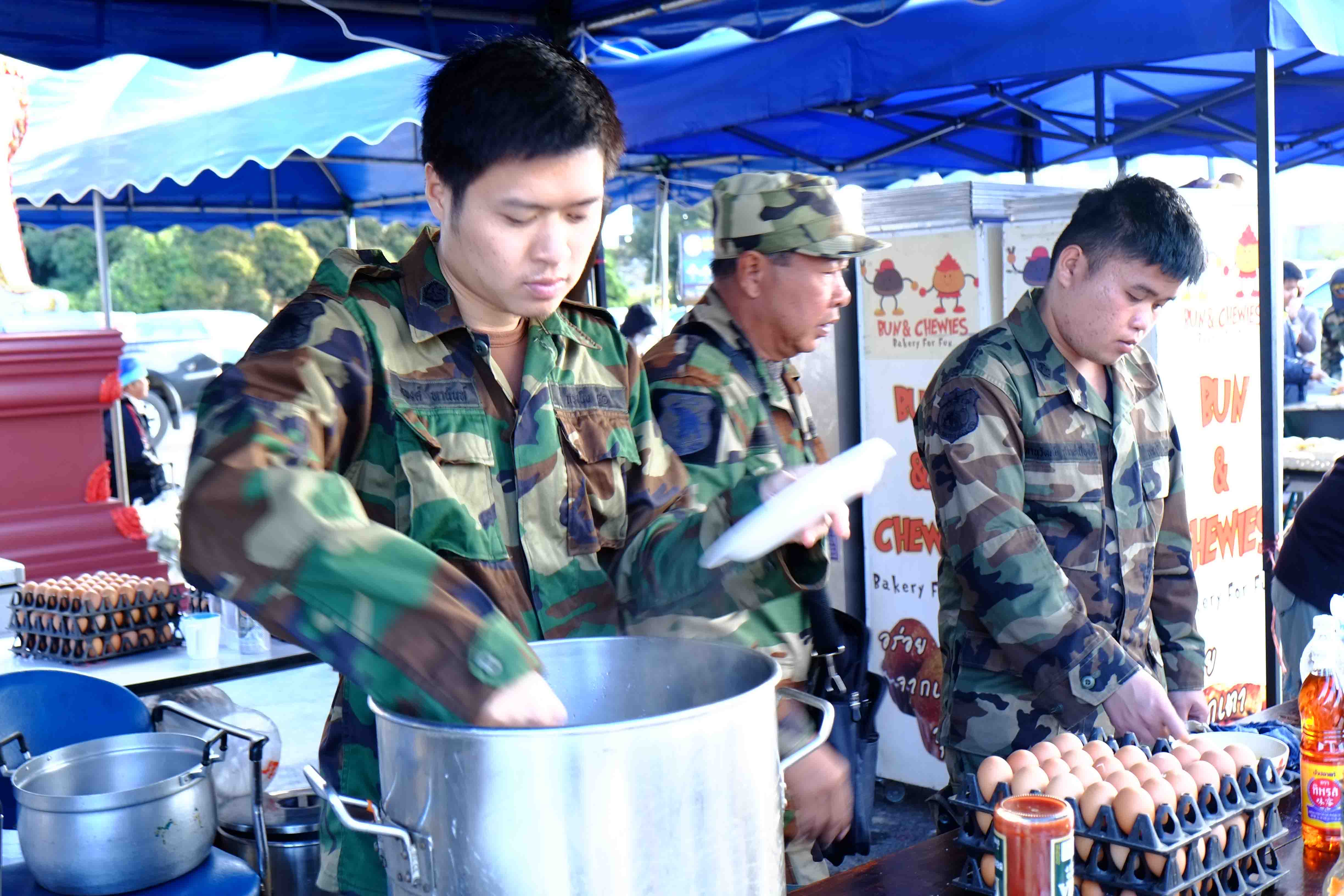 ด้านในมีเต้นท์ขายอาหาร โดยเหล่าทหารและแม่บ้านร่วมกันทำอาหารให้เราทาน