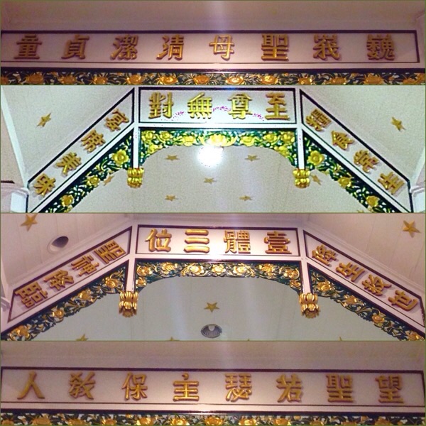 พอดีมีมาเข้าโบสถ์(คริสต์) มีสิ่งที่สงสัยแต่เด็ก คือมีภาษาจีนในโบสถ์ฝรั่ง เลยอยากรู้ความหมายมัน ช่วยแปลให้หน่อยสิคับ