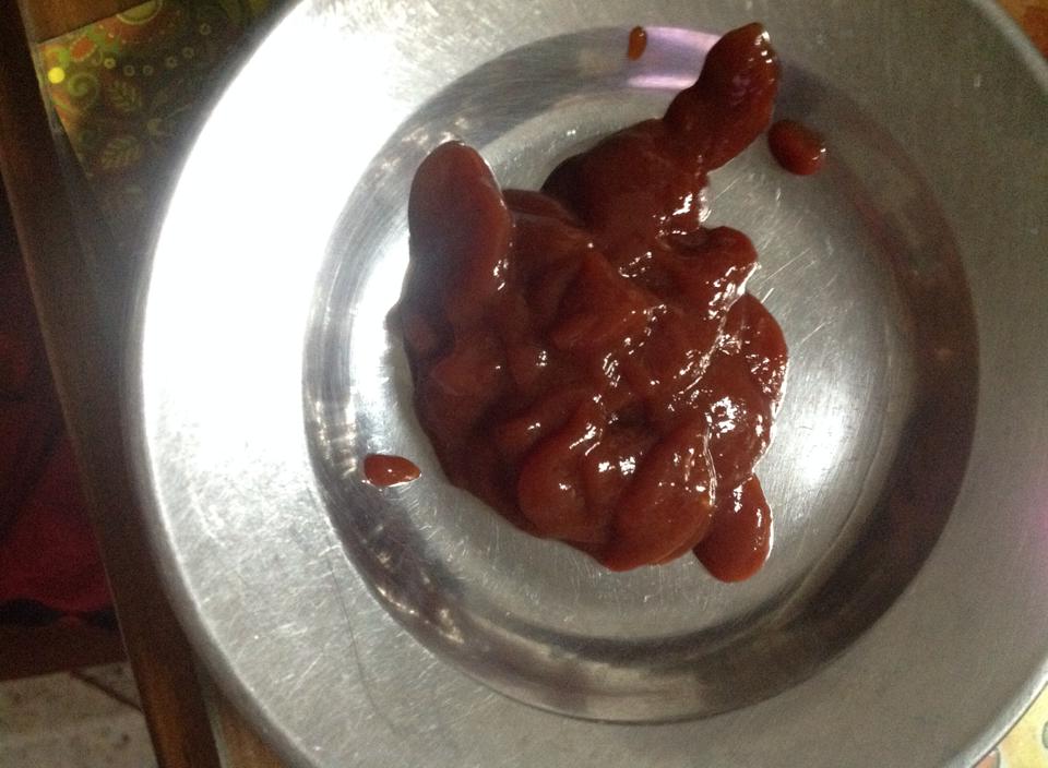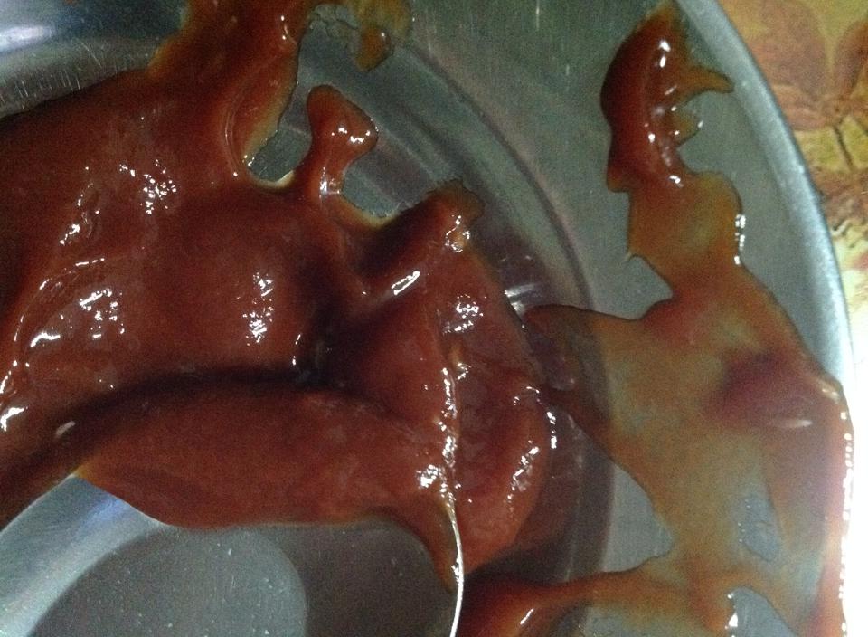 เปิดซอสมาเทลงจาน เทไปเยอะเลยครับ ซํกพักเห็นอะไรแปลก เลยเทใส่อีกจานเจองี้ครับ(หาที่ขาวๆ เส้นๆ )