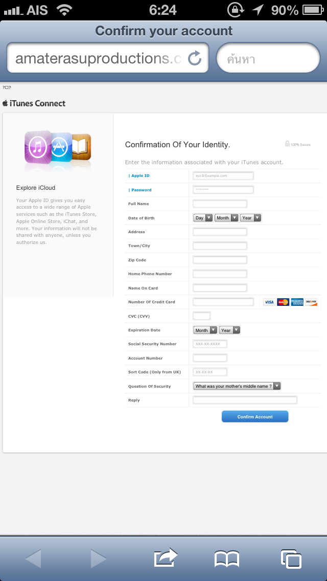 มีอีเมลเข้ามาตอน 0.12 น. มันแปลกๆ ลองกดลิงค์เข้าไป มีให้ใส่รหัส apple ID ด้วย
