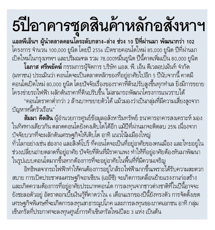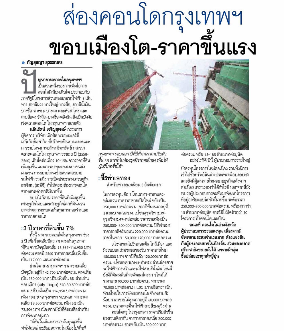 27/01/58 กรุงเทพธุรกิจ ส่อง คอนโดกรุงเทพฯ ขอบเมือง(ปริมณฑล) โต-ราคาขึ้นแรง