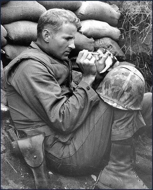 ปี 1943 ทหารอเมริกันอีกฝ่ายไม่น้อยหน้าป้อนน้ำให้ลูกแมวน้อย