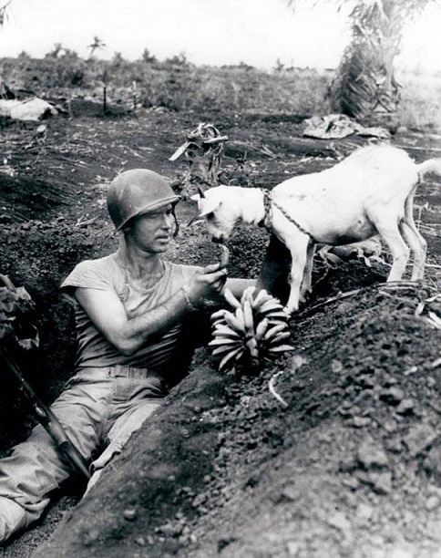 ปี 1945 ทหารอเมริกันแบ่งปันอาหารให้กับลูกแพะหลงทาง