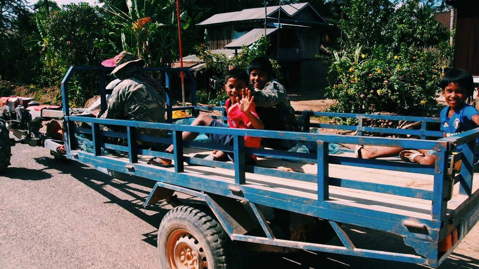 มีต้องช่วงลาดยาง เเละทางรุกรัง ระหว่างทางเด็กๆโบกมือให้