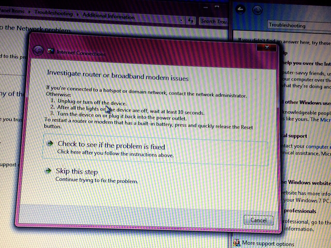 สวัสดีครับ ขอคำแนะนำหน่อยครับ notebookผมมีปัญหาเชื่อมต่อระบบLanผ่านสายไม่ได้ แต่ไวไฟยังคงใช้งานได้ พอกดเชื่อมแล้วมีเครื่องหมายตกใจ เมื่อทำการคลิกขวากดtroubleshot เครื่องแสดงหน้าจอแจ้งว่า Your broadban