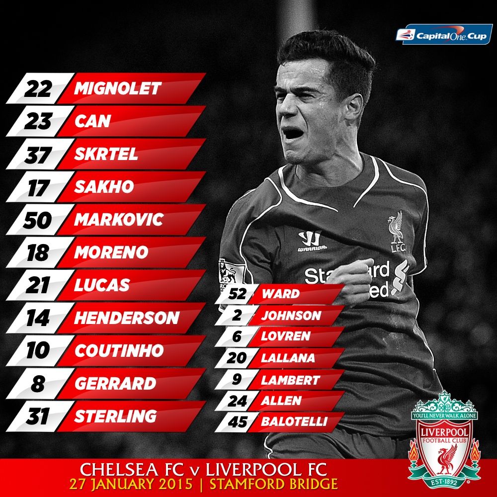 รายชื่อ 11 ตัวจริง: มินโญเลต์, ชาน, สเคอร์เทล, ซาโก้, ลูคัส, เฮนเดอร์สัน, เจอร์ราร์ด ©, โมเรโน่, มาร์โควิช, คูตินโญ่ และสเตอร์ลิง สำรอง: วอร์ด, เอนริเก้, แลมเบิร์ต, มานกิโย่, ลัลลานา, บอรินี แล