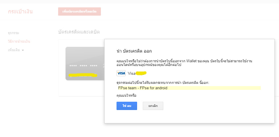 จะลบบัตรเครดิต Playstore มันฟ้องว่า ธุรกรรมต่อไปนี้จะได้รับผลกระทบจากการนำ บัตรเครดิต นี้ออก