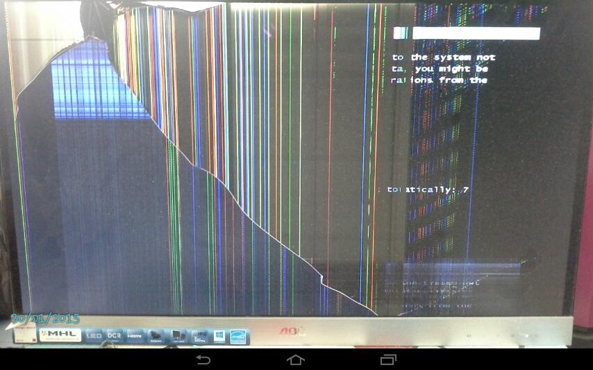 พอดีผมเดินสะดุดไปชนจอคอมล้ม พอเปิดคอมก้อเป็นแบบในรูปเลยครับ อยากถามว่ามันจะซ่อมได้ไหมครับ