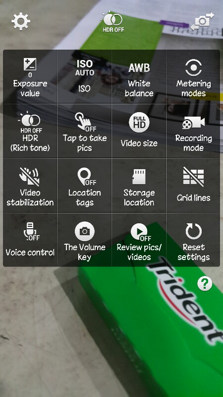 ปุ่ม setting ของกล้อง Samsung galaxy S5 อยู่ตรงไหนคะ