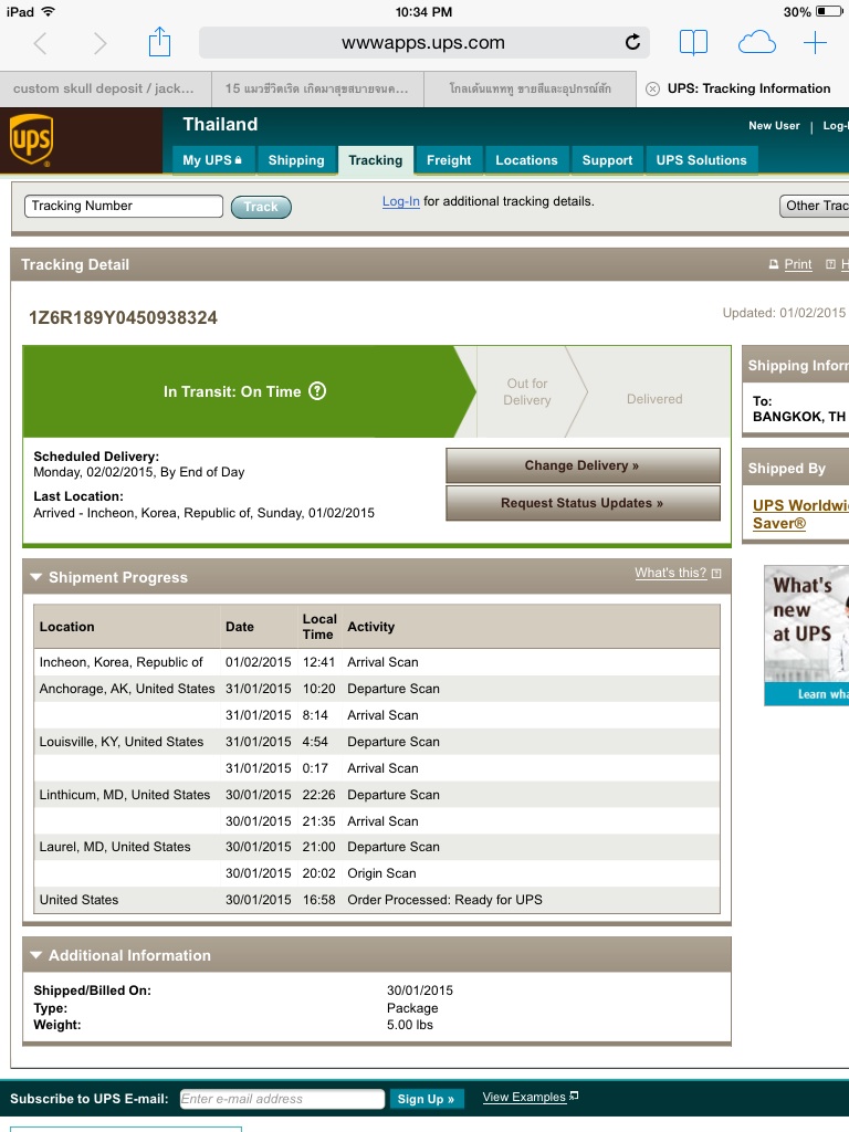 สถานะการจัดส่งพัสดุของ UPS !!!!!!!
