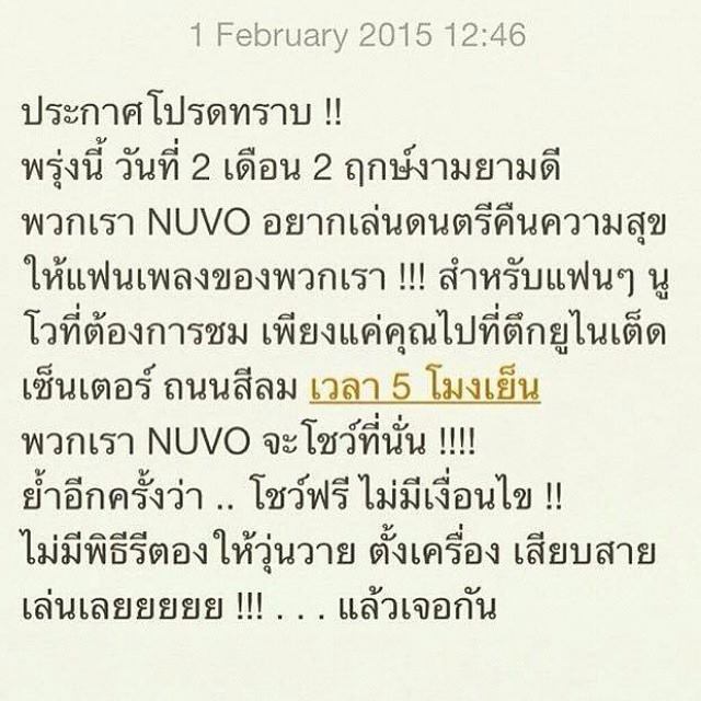 แฟนๆ nuvo เย็นนี้ห้ามพลาด หน้าตึกยูไนเต็ดเซ็นเตอร์ ถนนสีลม 5โมงเย็น