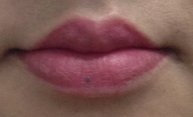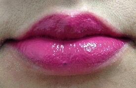 อันนี้ล่ะค่ะรูปแบบการทาปรกติของเรา คือฟาดน้องหล้าแล้วซับออกจนเกือบหมด เห็นมะล่า... ว่าปากดูเหมือนคนสุขภาพดีอมชมพูสวยงาม (อันที่จริงหลอกลวงชัด ๆ)