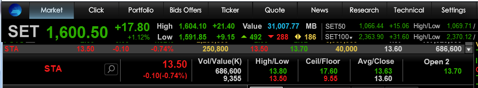 SET 1760 หุ้น STA ต้อง 17.6 ครับ