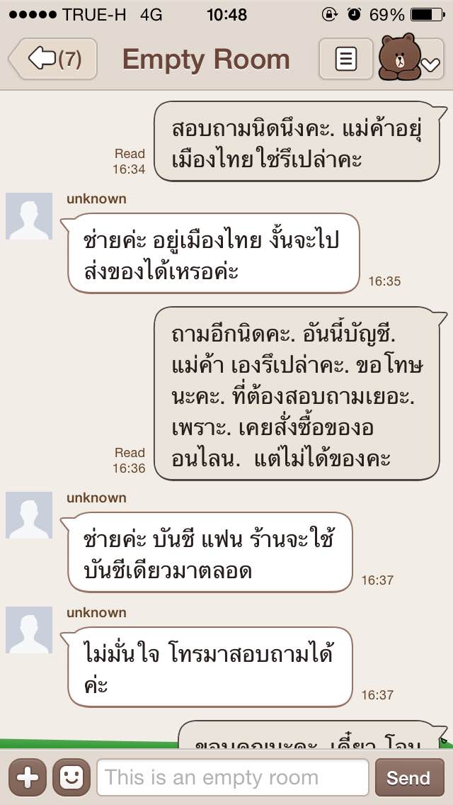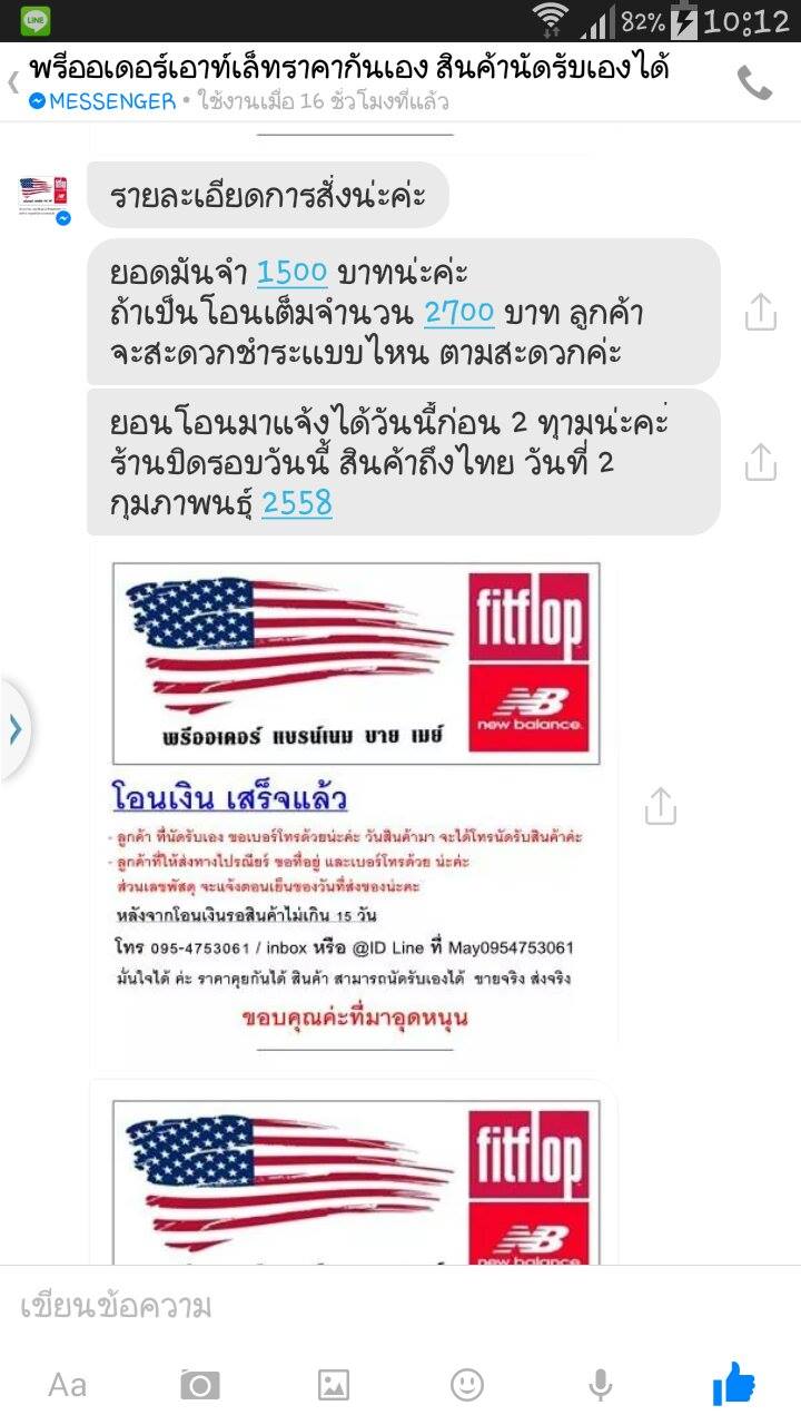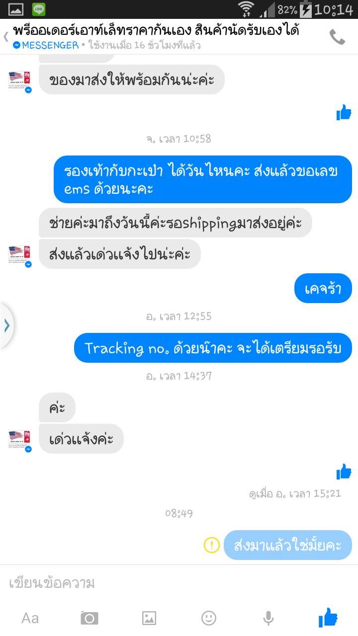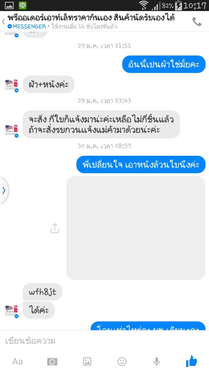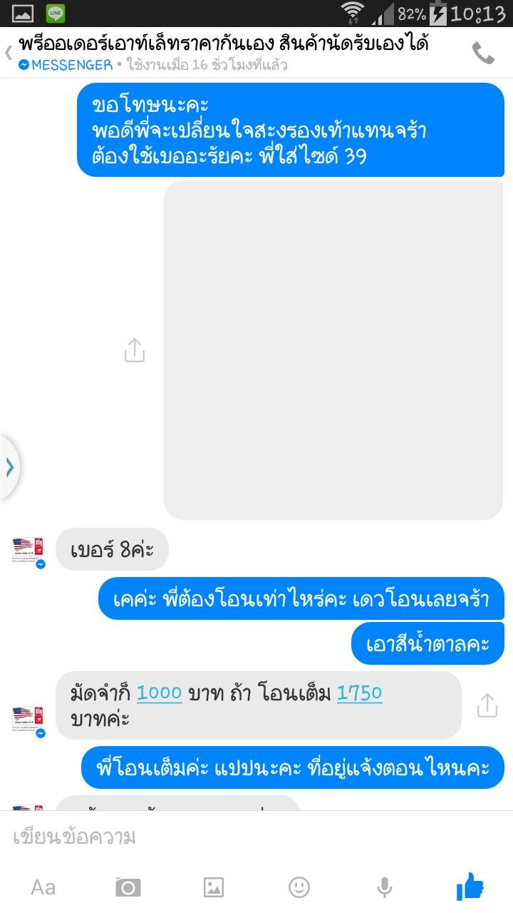 อันนี้เป็นบทสนทนาของเรากับเจ้าของร้านคะ และยังมีของคนอื่นๆ ที่โดนด้วยเหมือนกันตาม เป็นการคุยกันผ่าน messenger facebook ด้านล่างเลยคะ