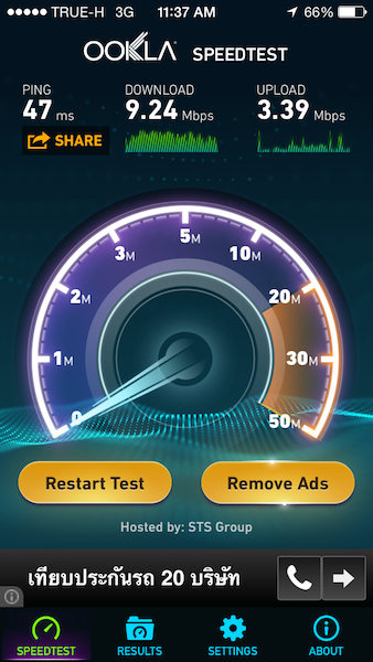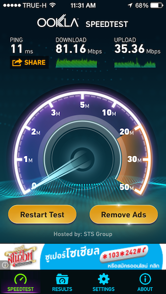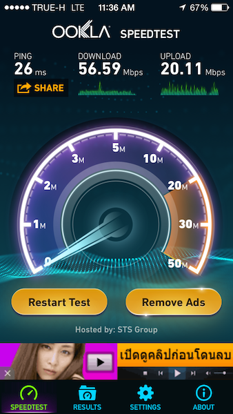 Speedtest 3G/4G LTE ของ True และ Wifi ของ***โรงเรียนานาชาติ***แห่งนึงใน กทม.
