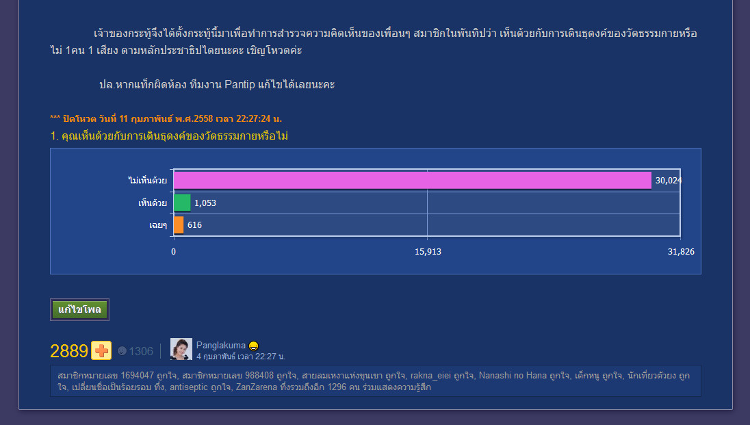 นี่คือโพลของจริงที่ไม่มีการจ้างวาน หรือใช้การตุกติกหลอกลวงเหมือนอย่างโพลของพระวัดธรรมกาย