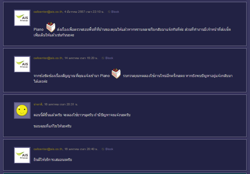 เป็นการแจ้งปัญหาการใช้งานของ AIS และได้รับแจ้งว่าได้มีการแก้ไขแล้วแต่ว่าการใช้งานจริง