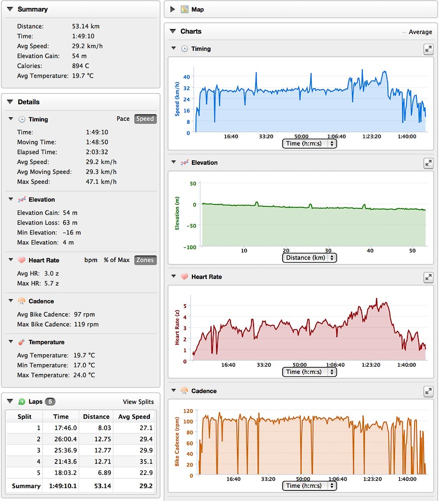กลับถึงบ้านโหลดการ์มินดูผลประกอบการแล้วแอบดีใจเล็กๆ รอบสุดท้ายที่ขึ้นลากได้ avg speed มา 35.1 km/h เลย แต่เล่นเอาขาเปลี้ยตะคริวตอดเล็กๆเหมือนกัน ต้องฝึกอีกเยอะ ได้ avg HR zone 3 พอดีเป๊ะ รอบขาตกไปหน่อยเหลือ 97 rpm เอง