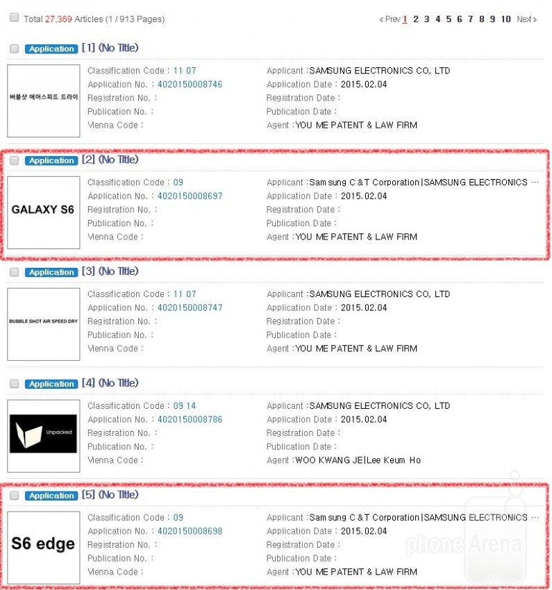 ซึ่งเจ้า Galaxy S6 เนี่ย ก็ไม่ผิดไปจากที่คาดอยู่แล้ว แต่ที่น่าสนใจคือ S6 edge นั่นเอง เพราะในข้อมูลที่ได้มานั้น ไม่ได้มีการระบุว่าจะมีคำว่า Galaxy นำหน้าหรือไม่ ส่วนทางด้านคำว่า edge ถ้าสังเกตดีๆจะพบว่าทำไมมันถึงเป็นตัวเล็กทั้งหมด ทั้งที่สมัย Note Edge ตัว E จะต้องเป็นตัวใหญ่ ซึ่งตรงจุดนี้แหล่งข่าวสันนิษฐานว่าอาจจะเป็นความผิดพลาดจากทาง KIPRIS (Korea Intellectual Property Rights Information Service) เอง