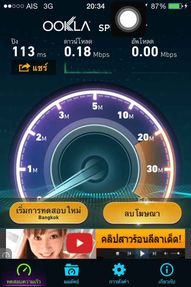 ช่วงต้นเดือน ปลอด FUP เลยมีเวลาว่างทดสอบความเร็ว 3G กันครับ พื้นที่ใช้งาน : ซอยวัดลาดปลาดุก อำเภอบางบัวทอง จังหวัดนนทบุรี เครื่องมือทดสอบ : ZTE MF62 MIFI Router 850/2100 21Mbps ความแรงของสัญญาณ : เ