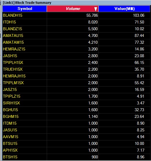 รายงาน 20 อันดับ SSF ที่ทำรายการ Block Trade 9/2/58 20 อันดับแรก
