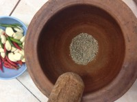 เริ่มแรกเราก็ตำ พริกไทยเม็ดให้ละเอียดก่อนนะครับ เพราะถ้าตำทีหลังจะไม่ละเอียดนะครับ