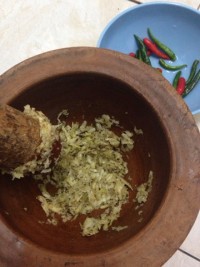 หลังจากนั้นก็ตำกระเทียม และพริกตามครับ