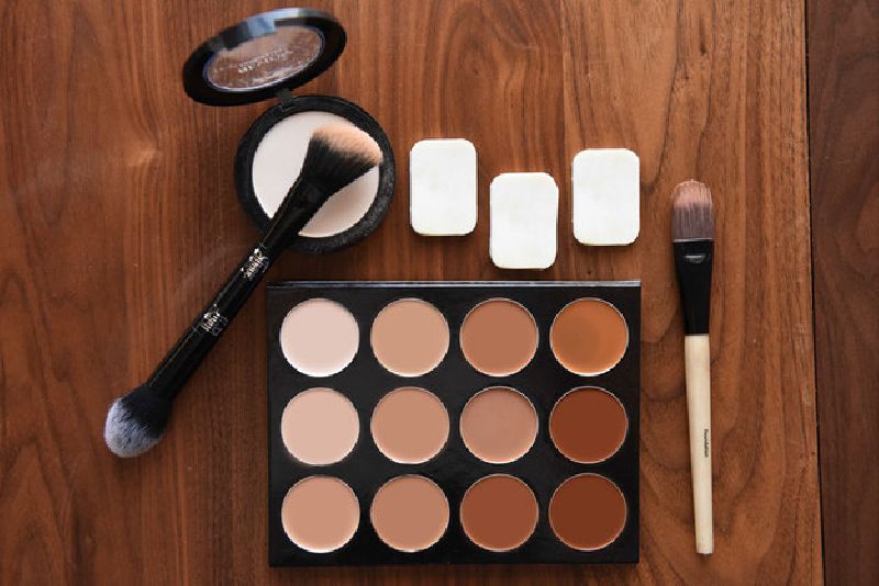 1. พาเลตต์คอนซีลเซอร์ 2. แป้งอัดแข็งแบบโปร่งแสง 3. แปรงหัวแบน 4. แปรงขนฟู และ5. ฟองน้ำสำหรับแต่งหน้า