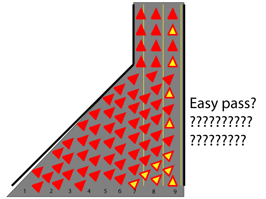 เนื่องจากรถที่อยู่ทางด้านขวาจะโดนรถทางซ้ายเบียดบังมาก ตามภาพประกอบ
