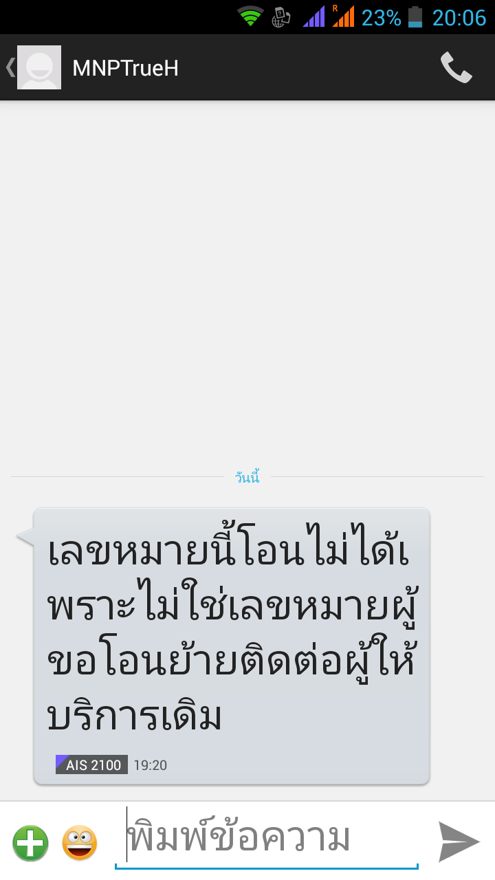 รบกวนด้วยครับ ผมย้ายค่ายจาก 12call ไป True แบบเติมเงิน วันนี้มีข้อความเข้ามา ซึ่งผมเองได้ลงทะเบียนชื่อที่ 0 ais แล้วครับ รบกวนตรวจสอบด้วยครับ ขอบคุณครับ