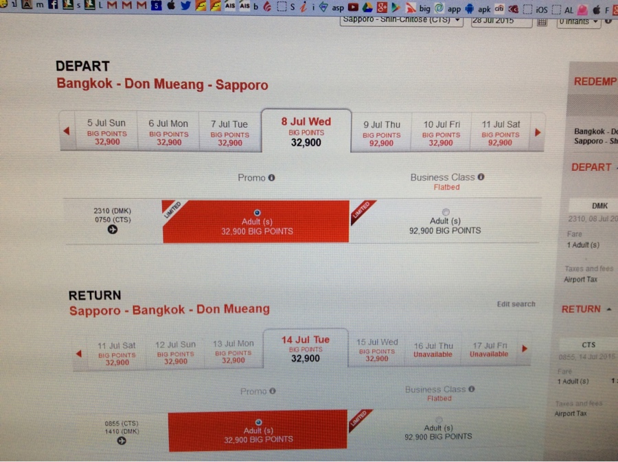 จอง Thai AirAsia X ไปโตเกียวได้แล้วครับ ใช้ big point 60332 บวกกับเงินอีก 31151 บาท ได้ DMK - NRT 5 ที่นั่งครับ