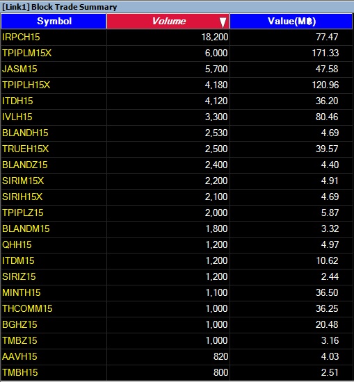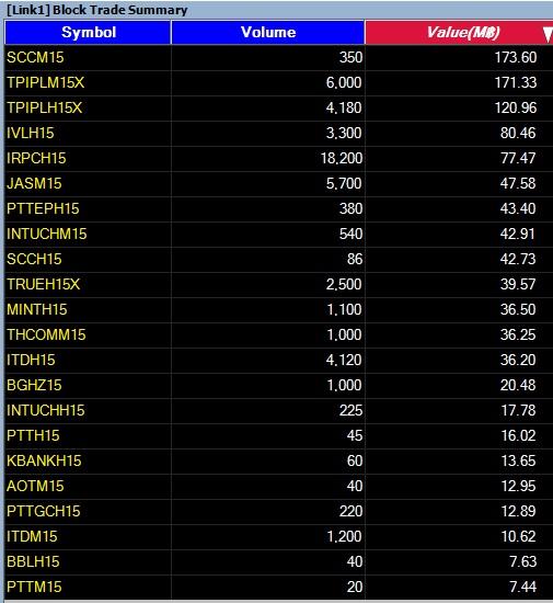 รายงาน 20 อันดับ SSF ที่ทำรายการ Block Trade 13/2/58 20 อันดับแรก
