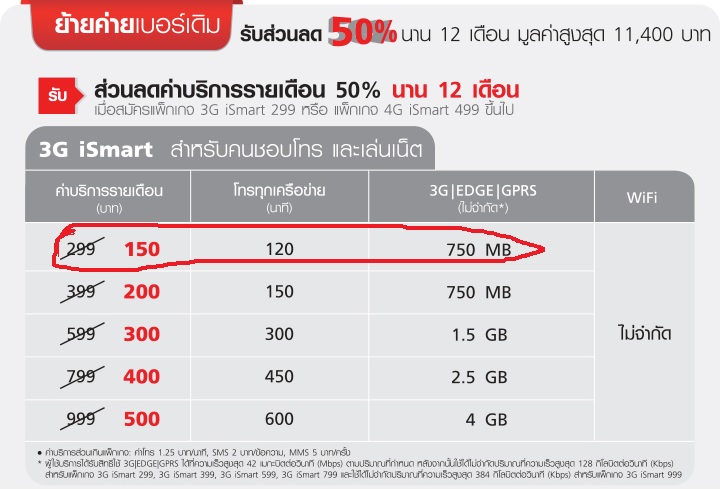 ขอใช้สิทธิ โปร 3G iSmart ลด 50 % ตามโปรชัวว์ ข้างล่าง
