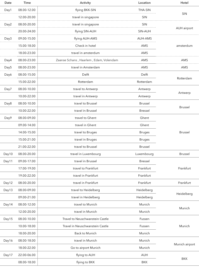 ตั้งใจไปในกลุ่มประเทศเบเนลักซ์และเยอรมัน 17 วัน 16 คืน ครับ ไม่ทราบว่าพอจะเป็นไปได้ไหมครับ
