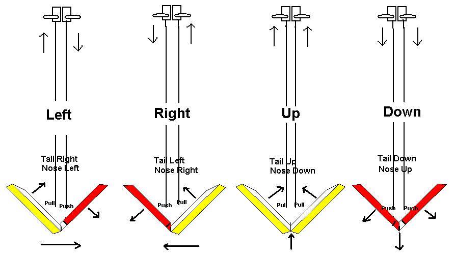 ส่วน V Tail ก็ตามนี้เลย จะเลี้ยวขวาซ้าย ปรับเครื่องขึ้นลงได้ด้วยหางระดับเพียงสองอัน