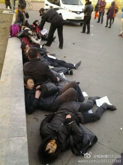 ภาพเหตุการณ์ชาวจีน 12 คน พร้อมใจกันดื่มยาฆ่าแมลงกลางกรุงปักกิ่ง