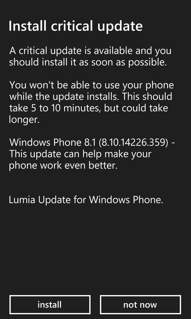 Lumia 925 Release Denim OS version 8.10.14226.359 Firmware version 3051.50009.1451.1001