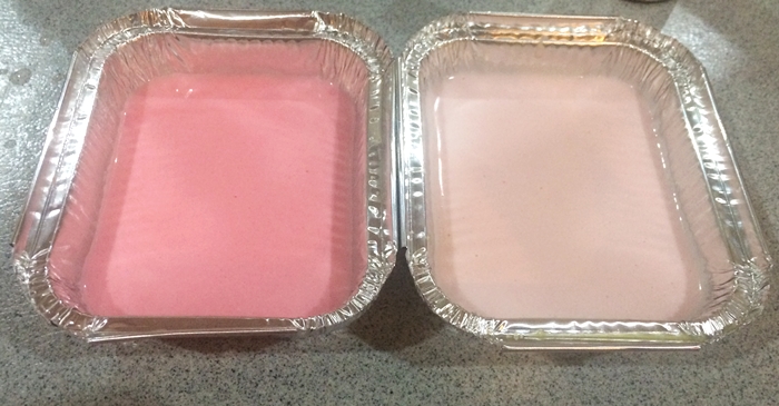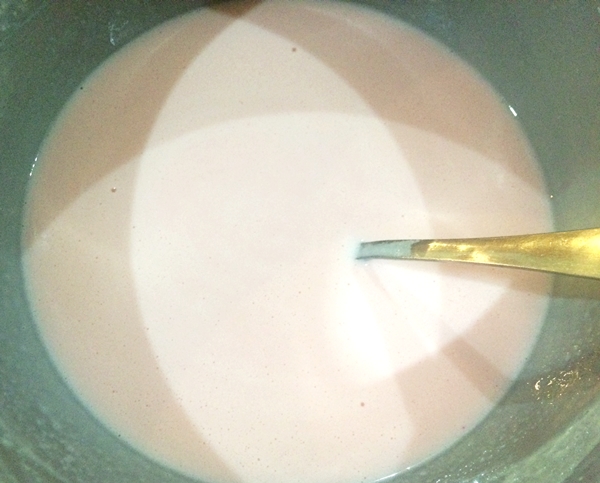 ✔ นะแบ่งไว้ 2 ถ้วย ถ้วยแรกใส่สีชมพูไป 1/4 ช้อนชา ได้มาเป็นสีชมพูอ่อนหวานๆแบบนี้
