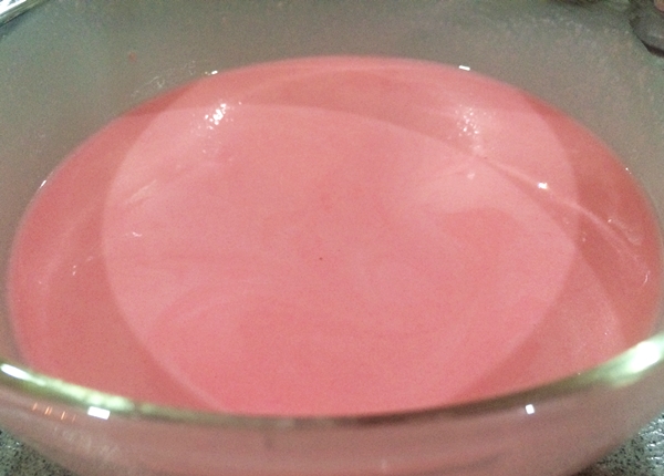 ✔ อีกถ้วยนะใส่สีแดงสตรอเบอรี่ลงไป 1/2 ช้อนชา ได้ออกมากำลังดี