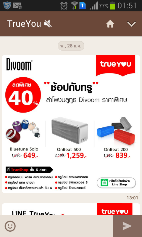 เราสั่งซื้อลำโพง ใน LINESHOP ค่ะ เป็นร้านค้าของทรูค่ะ