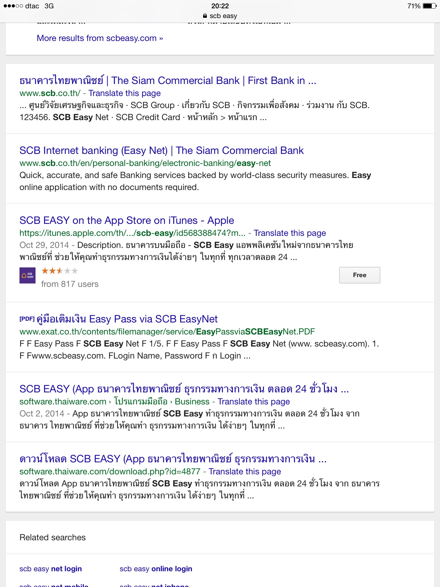 ตามรูปเลยครับ วันนี้ผมเพิ่งโหลดแอพธนาคารต่างๆมาลงในไอแพด แต่พอโหลดมาแล้วก็เจอ scb easy 2 อัน ซึ่งพอเข้าไปแล้วก็หน้าตาคล้ายๆกัน แต่ที่ผมโหลดมาได้ 2 อันคือ อันแรกผม search คำว่า scb ใน appstore แล้วเจอครับ แต่อันที่ 2 ผมหาจาก google โดยใช้คำว่า scb easy แล้วก็โหลดมาจากลิงค์(ที่มีรูปแอพ) ตามรูปนี้ครับ