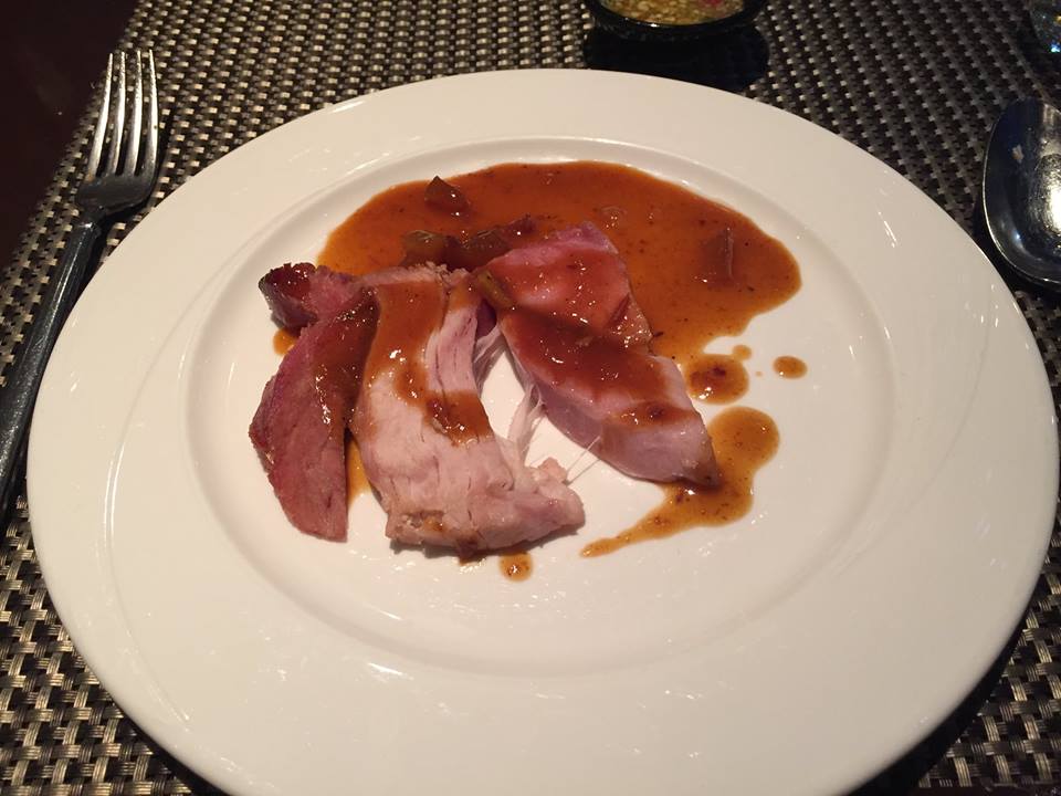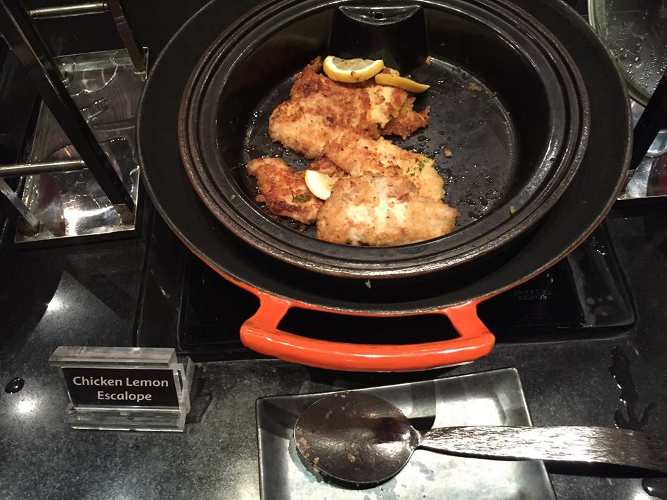 อย่างที่สอง escalope ไก่ ซึ่งคำว่า escalope คือการทำให้เนื้อเป็นแผ่นบางๆด้วยการเลาะกระดูกและรีดให้แบน สำหรับตัวนี้นำไปทอด แต่ทิ้งไว้นานข้างนอกที่เป็นแป้งเลยให้ความรู้สึกแฉะไป แต่ตัวไก่สุกกำลังดี