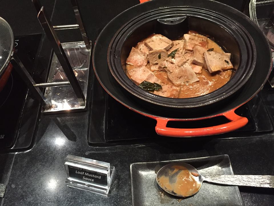 อย่างที่ 3 meat loaf ซอสมัสตาร์ด meat loaf พูดง่ายๆคือเนื้อบดผสมเครื่องเทศแล้วไปใส่พิมพ์แล้วไปอบ อันนี้รสชาติไม่เค็มเกินไป ถือว่าใช้ได้