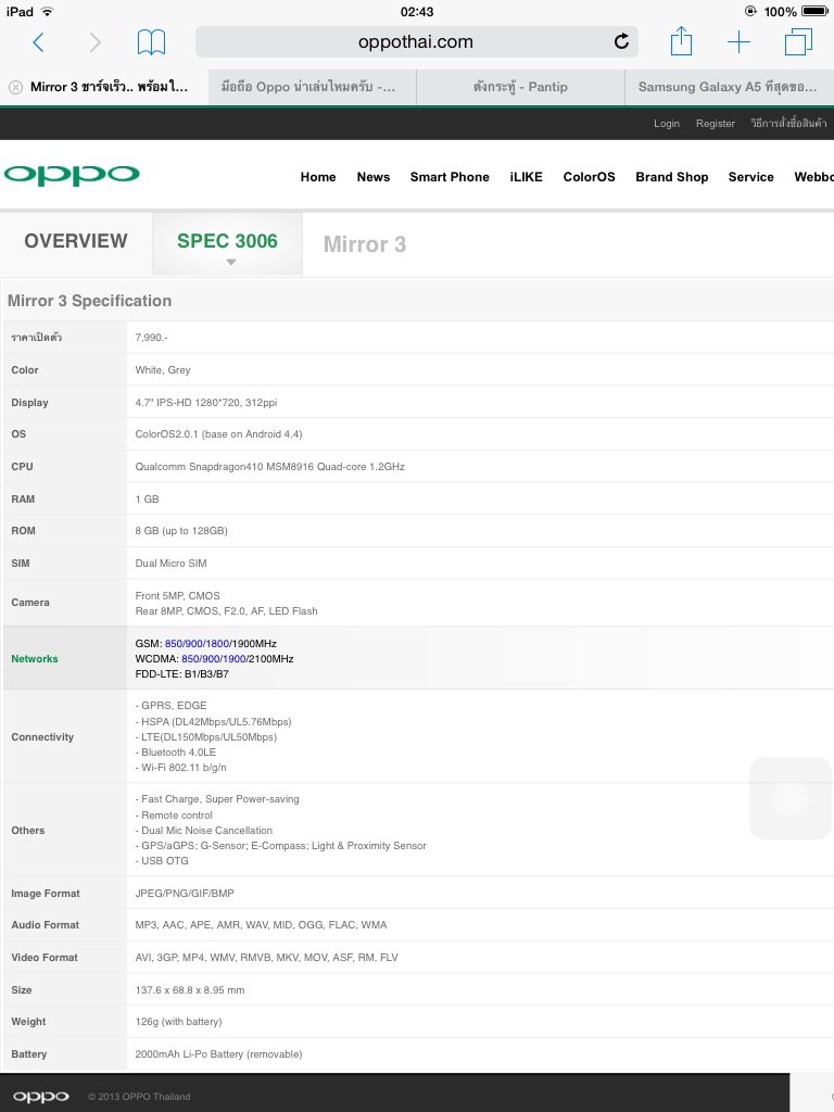 ข้อมูล http://www.oppothai.com/smartphone/3006