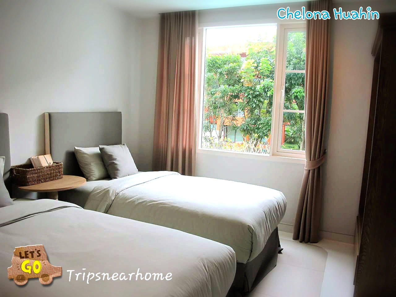 มาห้องนอนเล็กก่อนนะคะ ห้องนี้เป็นเตียงคู่ค่ะ มีตู้เสื้อผ้าและหน้าต่างใหญ่ อากาศถ่ายเทดีค่ะ
